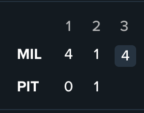 Quick starts and four-run innings have been one of the calling cards for the Brewers' success this season. They combined the two Sunday and it resulted in a Milwaukee area code start: 4 in the first, 1 in the second, 4 in the third – 414. Bauers had a two-run double, Vaughn an RBI single and Caleb Durbin plated the final run of the first inning with a double-play grounder. Danny Jansen doubled and scored on a wild pitch in the second. In the third, Bauers walked, Vaughn singled and Blake Perkins had a one-out double to score Bauers. After Danny Jansen walked, a Joey Ortiz grounder drove in Vaughn. Brice Turang then singled home the final two runs of the third inning. All of the runs were charged to Pirates rookie right-hander Bubba Chandler, the team's top pitching prospect who was making his first MLB start after three relief appearances.